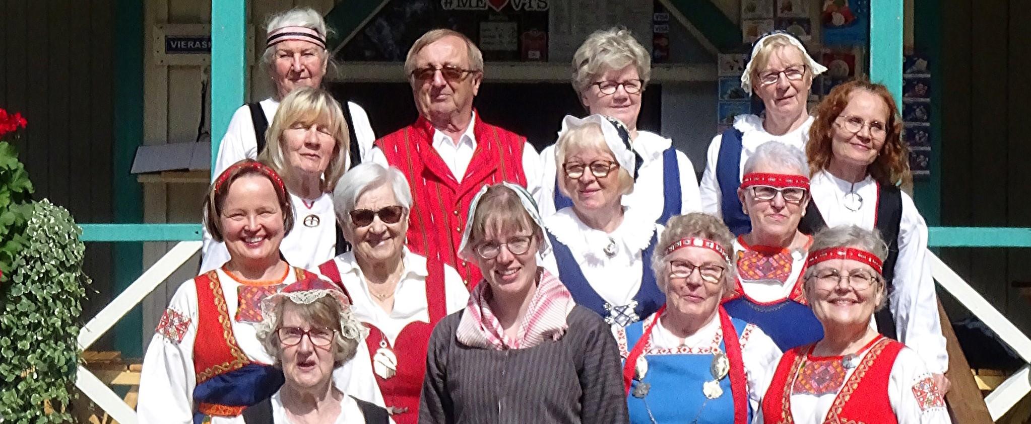 Kansallispuvut esillä seuran 70-juhlassa.